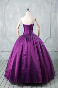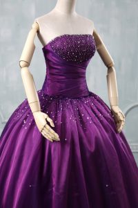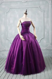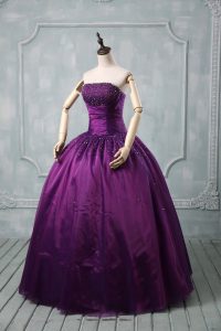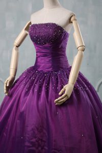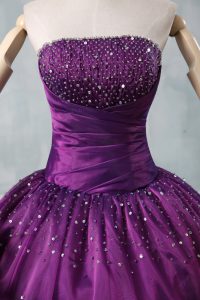 Purple Strapless Neckline Beading Quinceanera Dresses Sleeveless Lace Up