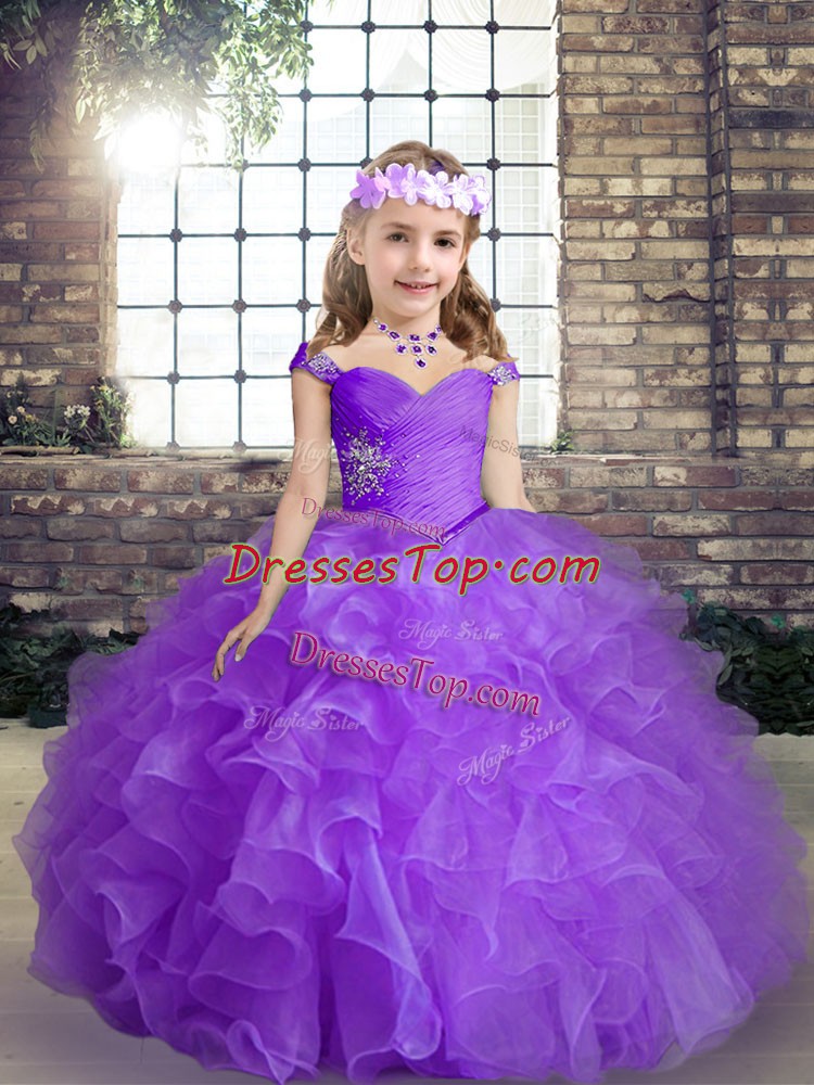 Purple Straps Lace Up Beading Little Girls Pageant Gowns Sleeveless