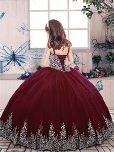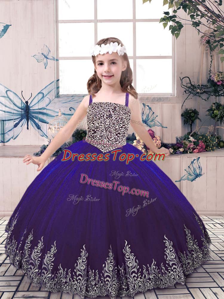 Purple Straps Neckline Beading and Embroidery Little Girl Pageant Dress Sleeveless Lace Up