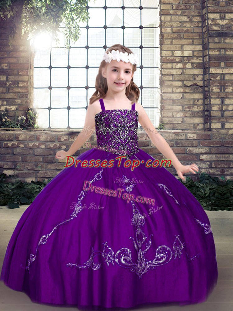 Purple Straps Neckline Beading Little Girl Pageant Dress Sleeveless Lace Up
