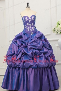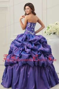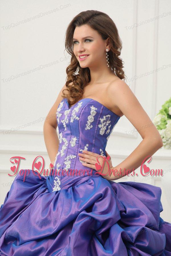 Purple Sweetheart Appliques and Pick-ups Taffeta Quinceanera Dress