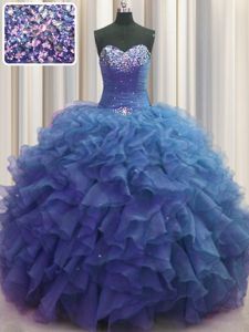 Purple Sweetheart Lace Up Beading and Appliques and Ruffles Quince Ball Gowns Sleeveless