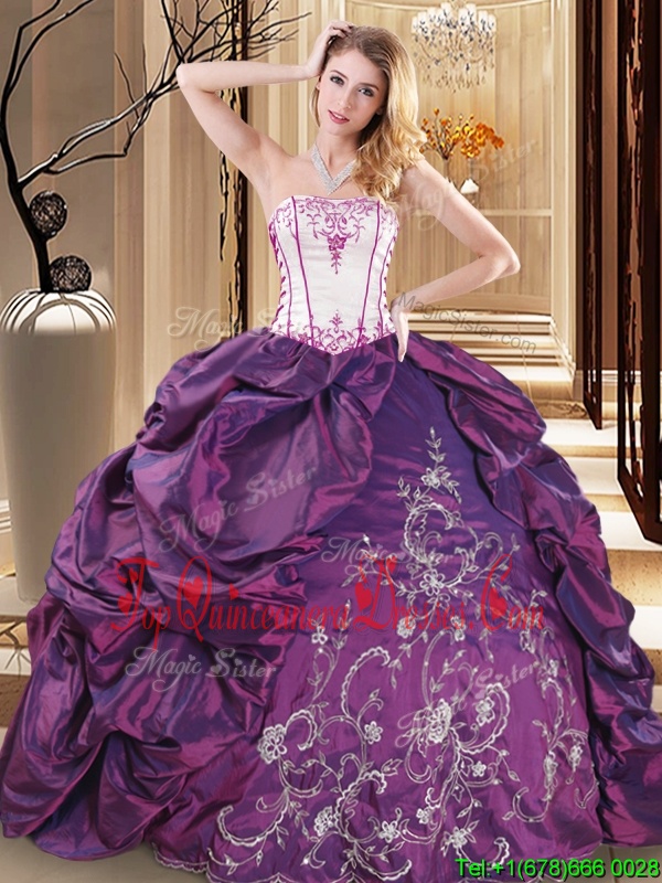 Purple Taffeta Lace Up Quinceanera Gown Sleeveless Floor Length Embroidery