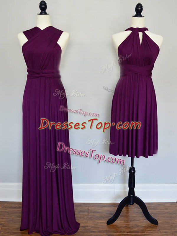Purple Vestidos de Damas Prom and Wedding Party with Ruching Halter Top Sleeveless Lace Up