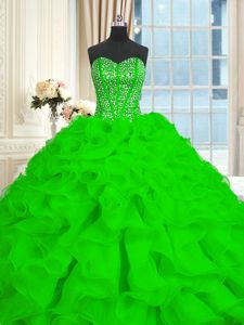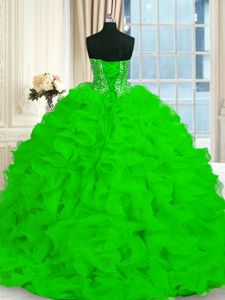Quince Ball Gowns Military Ball and Sweet 16 and Quinceanera and For with Beading and Ruffles Sweetheart Sleeveless Brush Train Lace Up