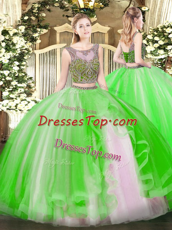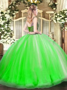 Quince Ball Gowns Military Ball and Sweet 16 and Quinceanera with Beading and Ruffles Scoop Sleeveless Lace Up