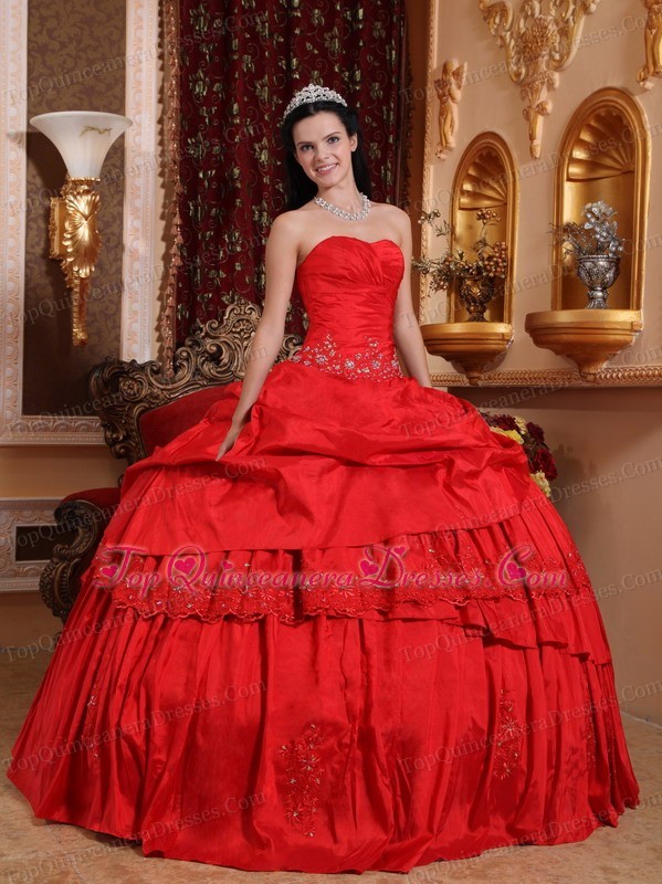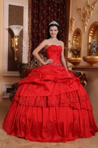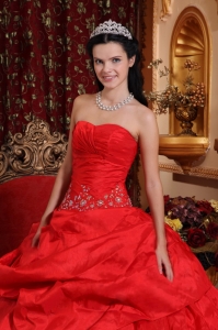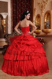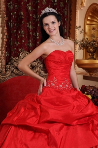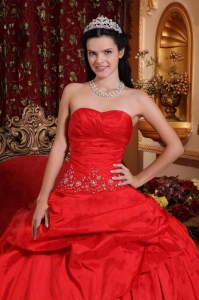 Quinceanera Ball Gown Sweetheart Taffeta Bead Appliques Red