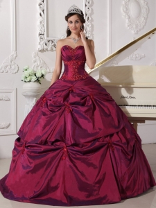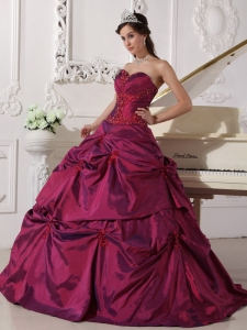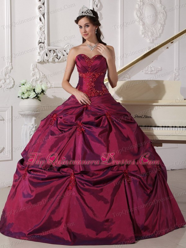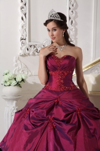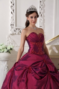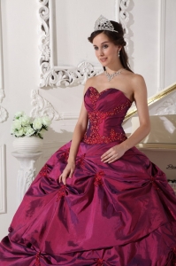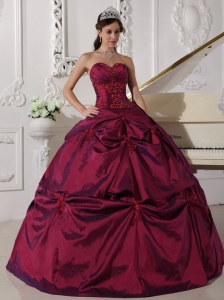 Quinceanera Dress Burgundy Ball Gown Sweetheart Appilques
