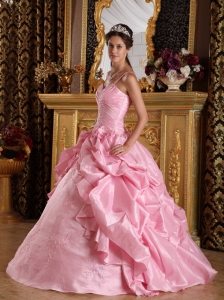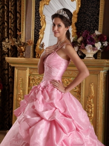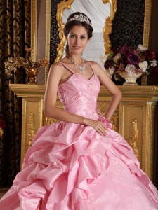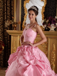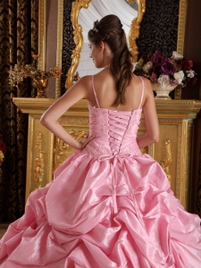 Quinceanera Dress Pink Straps Beading and Appliques Ball Gown