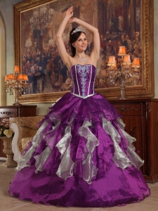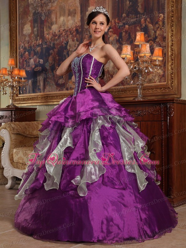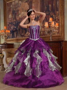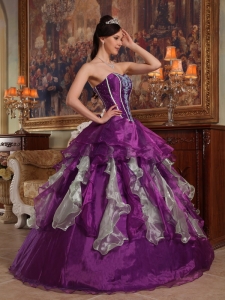 Quinceanera Dress Purple Sweetheart Organza Beading Ball Gown