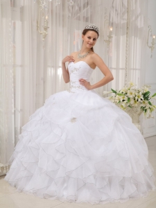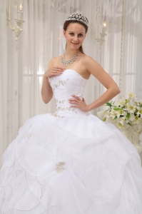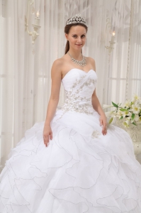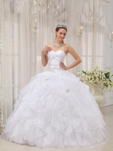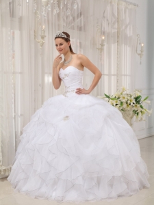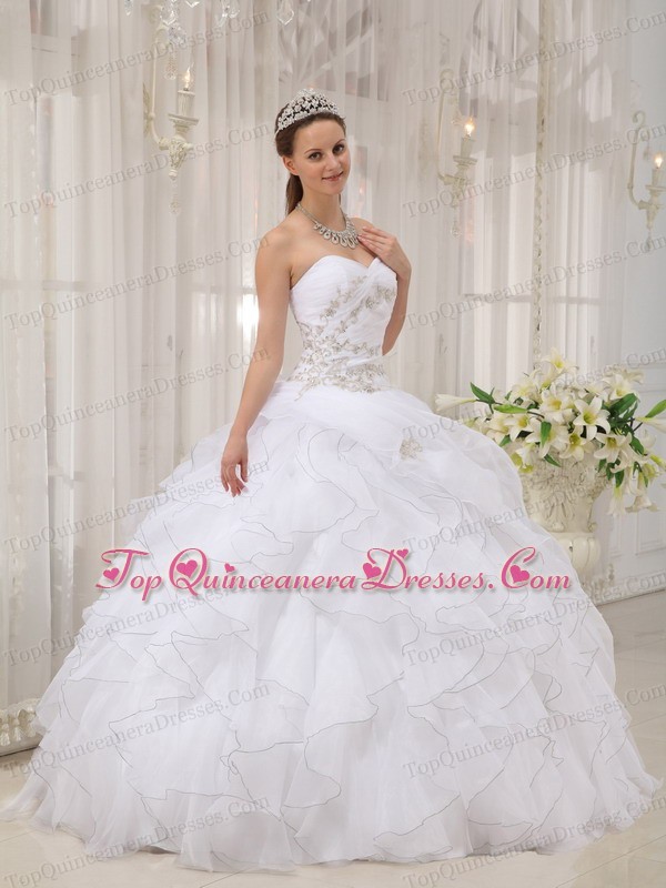 white quinceanera dress with ruffles,