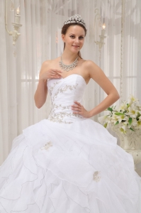 white sweetheart floor length quinceanera dress,