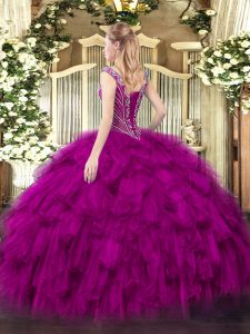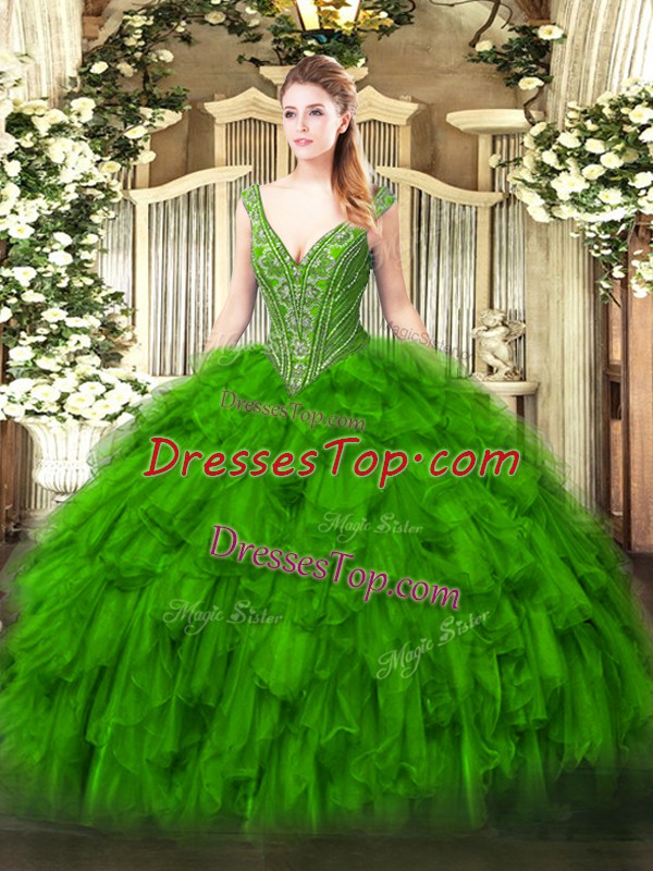 Quinceanera Gowns Military Ball and Sweet 16 and Quinceanera with Beading and Ruffles V-neck Sleeveless Lace Up