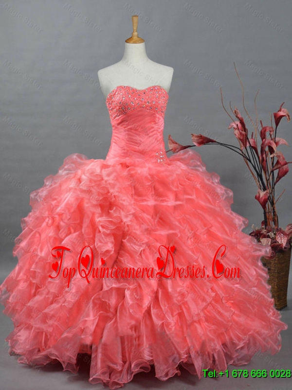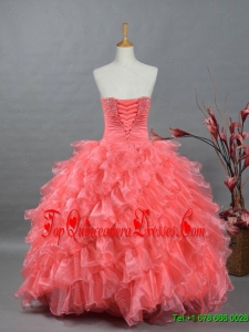 Real Sample Sweetheart Beading Watermelon Quinceanera Dresses for 2015