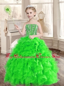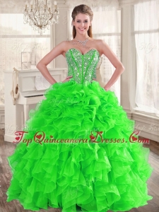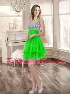 Really Puffy Spring Green Sweet 16 Dress and Sequined Short Dama Dresses and Beaded and Ruffled Mini Quinceanera Dress