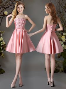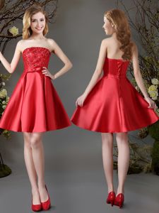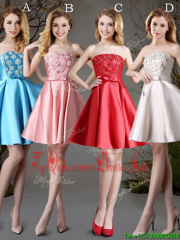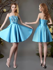Red and Baby Blue and Champagne Lace Up Dama Dress for Quinceanera Appliques and Bowknot Sleeveless Mini Length