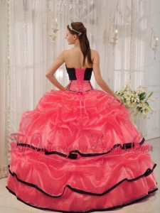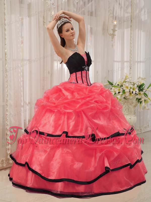 Red and Black Ball Gown Strapless Floor-length Beading Fashionable Quinceanera Dress