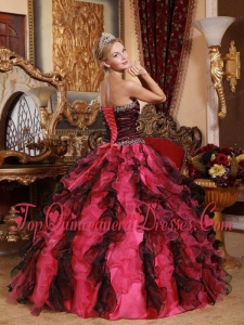 Red and Black Sweetheart Floor-length Organza Beading and Ruffles Quinceanera Dress