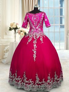Orange Red Half Sleeves Tulle Zipper Sweet 16 Dresses for Military Ball and Sweet 16 and Quinceanera