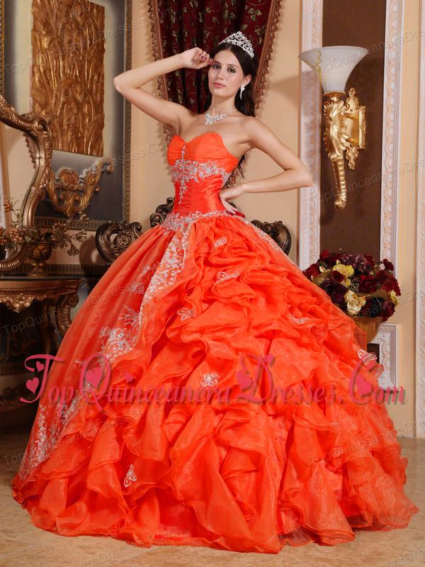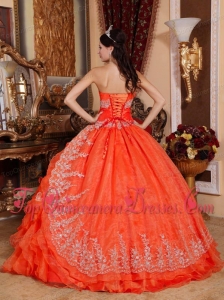 Red Ball Gown Sweetheart Floor-length Organza Beading Quinceanera Dress