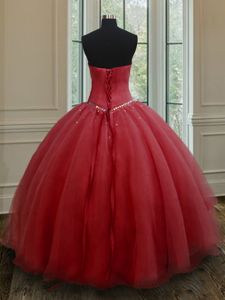 Red Ball Gowns Beading Vestidos de Quinceanera Lace Up Organza Sleeveless Floor Length