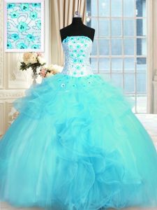 Red Ball Gowns Sweetheart Sleeveless Organza Floor Length Lace Up Beading and Ruffles Quinceanera Gowns