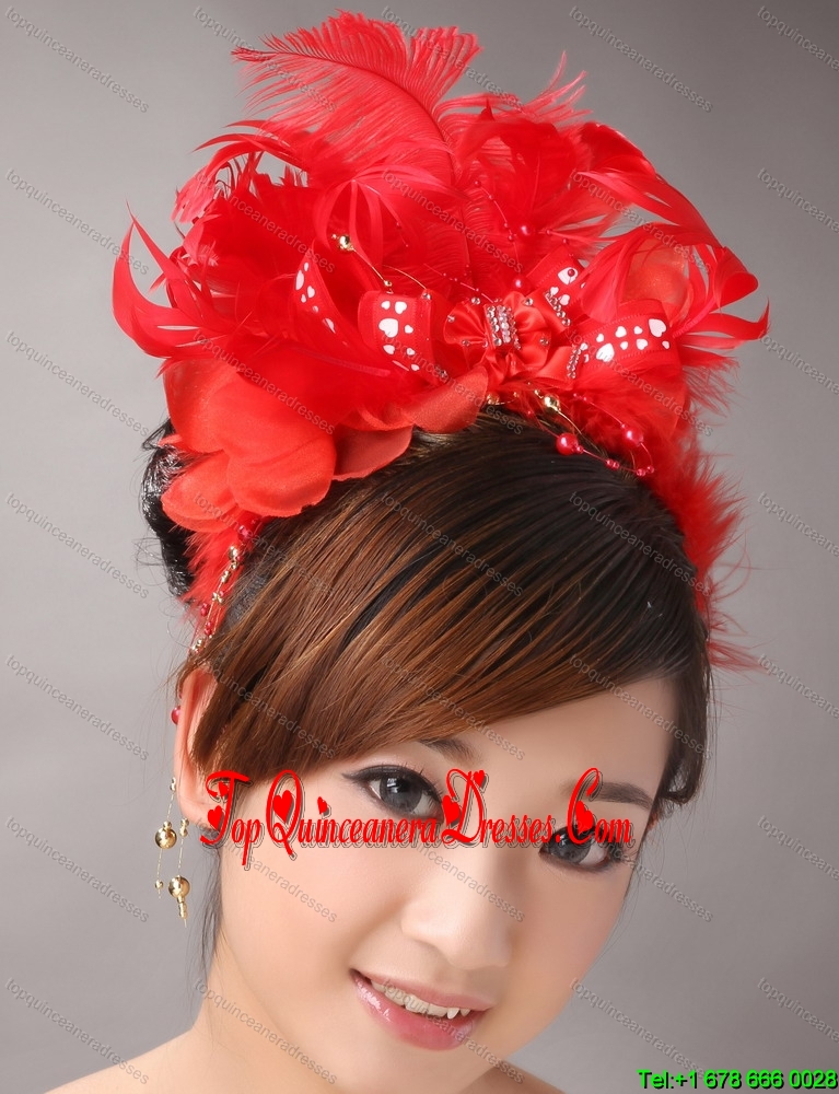 Red Chiffon Feather Big Flower With Beading For Bridal New Arrival