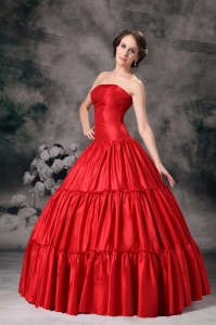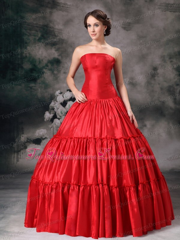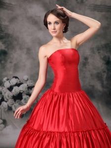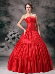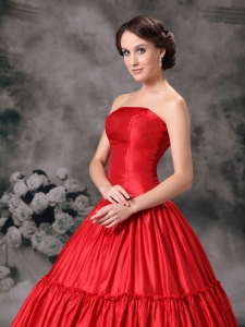 Red Embroidery Quinceanera Dress Strapless Simple 2013