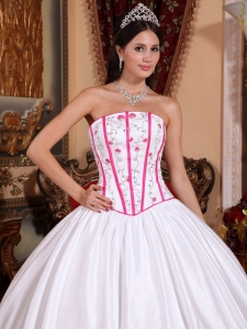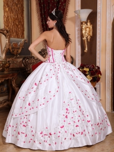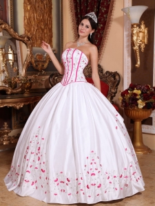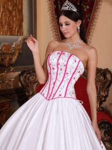 Red Embroidery White Strapless Beaded Quinceanera Ball Gown