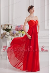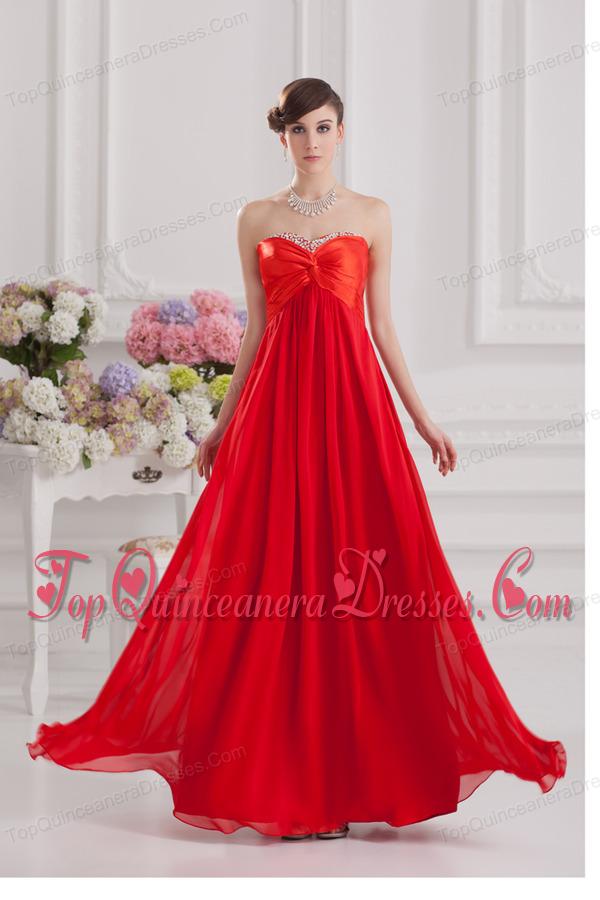 Red Empire Chiffon Beaded Decorate Dresses for Dama with Sweetheart