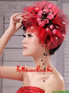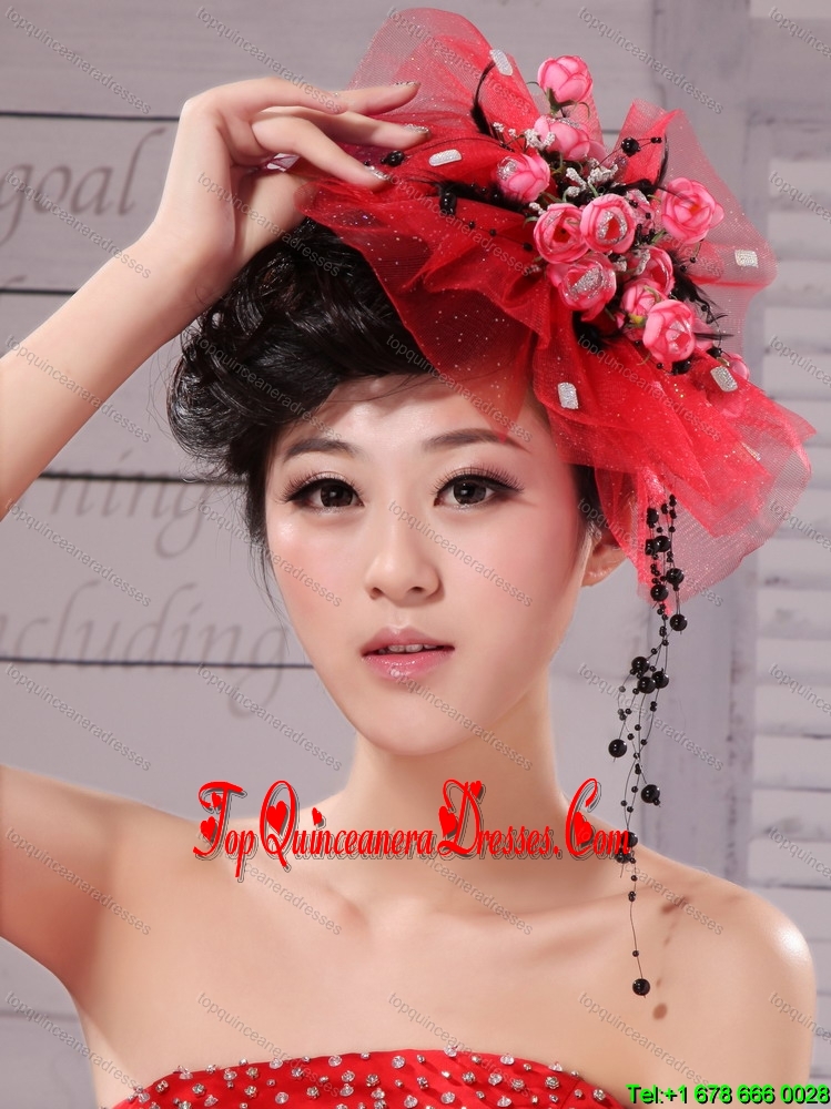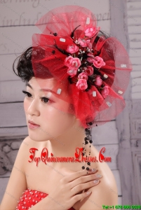 Red Fascinators Tulle Hand Made Flowers Outdoor and Special Occasion