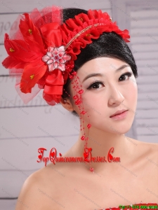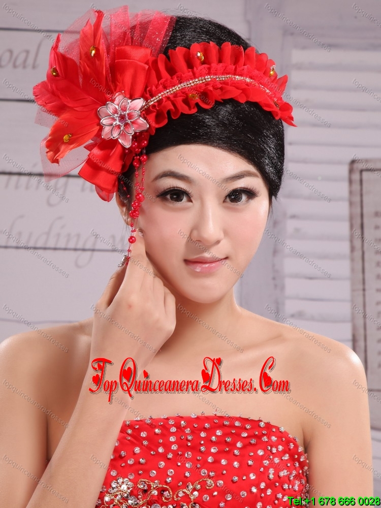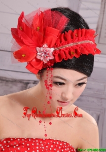 Red Headpiece For Bride Pearl Headdress Feathers