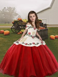 Red Lace Up Little Girl Pageant Dress Embroidery Sleeveless Floor Length