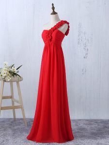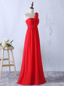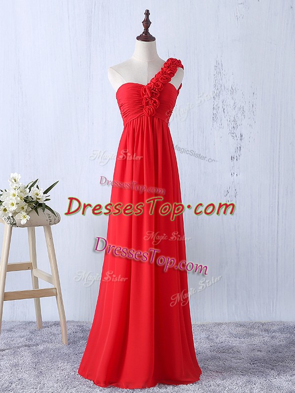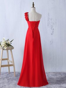 Red Lace Up One Shoulder Hand Made Flower Damas Dress Chiffon Sleeveless