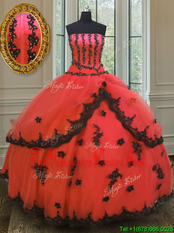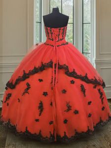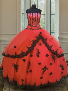 Red Lace Up Sweet 16 Quinceanera Dress Appliques Sleeveless Floor Length