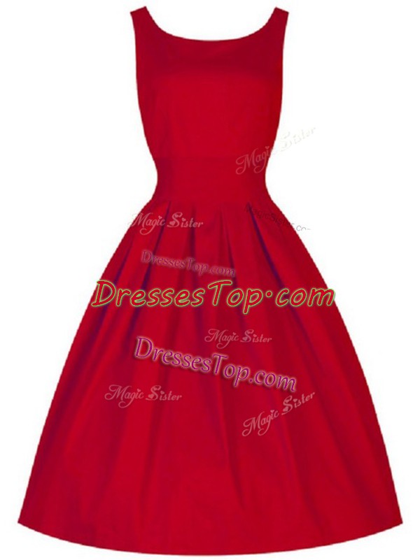 Red Lace Up Vestidos de Damas Ruching Sleeveless Knee Length