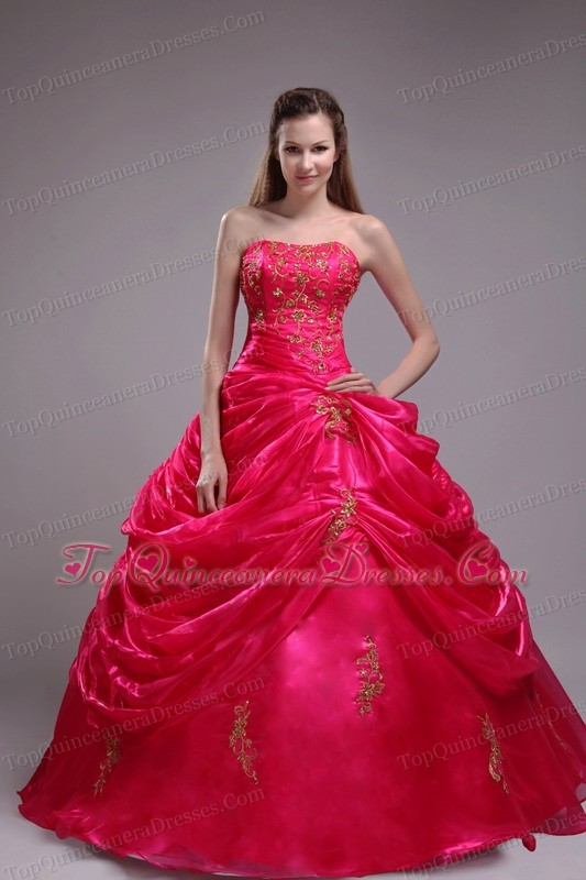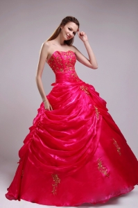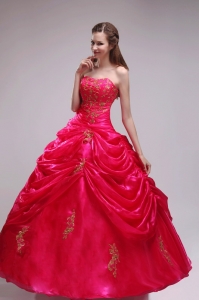 Red Orangza Applqiues Sweet Sixteen Quinceanera Dresses