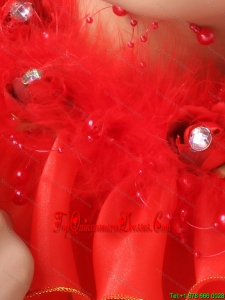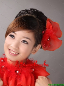 Red Organza Hearpices With Imitation Feather Rhinestones Decorate