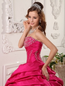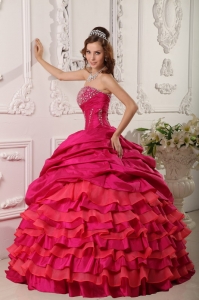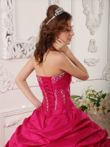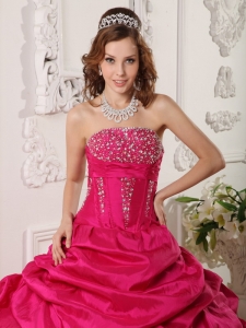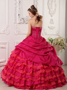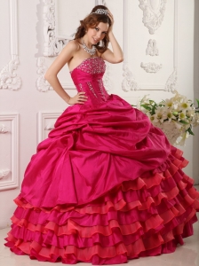 Red Quinceanera Dress Strapless Taffeta Beading Ball Gown