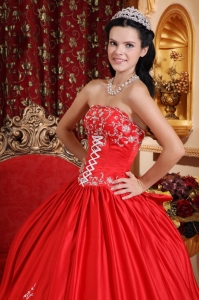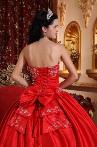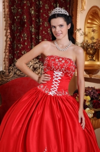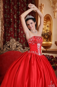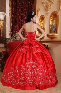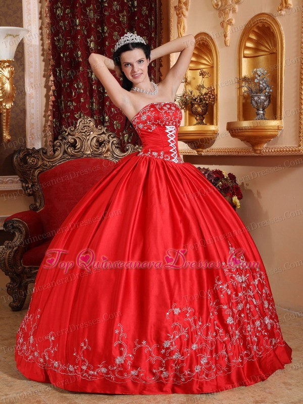 Red Quinceanera Dress Strapless Taffeta Embroidery Ball Gown
