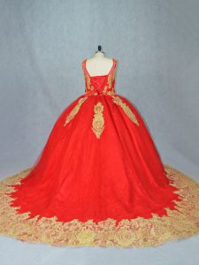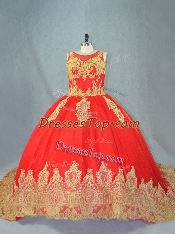 Red Scoop Neckline Appliques Sweet 16 Dresses Sleeveless Lace Up