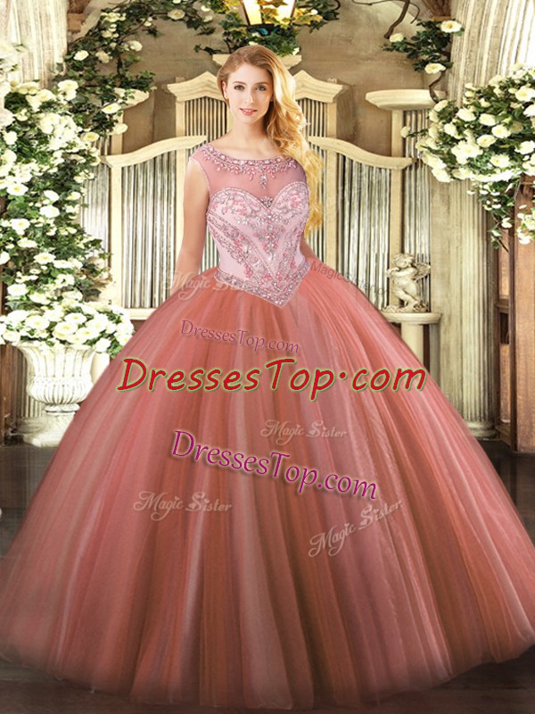 Red Scoop Neckline Beading Ball Gown Prom Dress Sleeveless Zipper