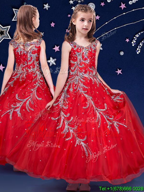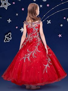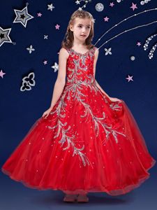 Red Scoop Zipper Beading and Appliques Evening Gowns Sleeveless
