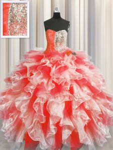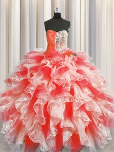 Red Sleeveless Beading and Ruffles Floor Length Sweet 16 Dresses