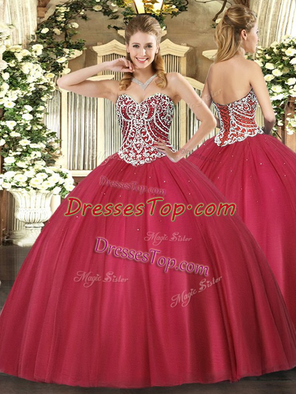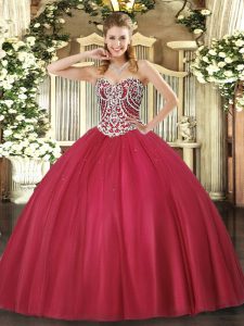 Red Sleeveless Beading Floor Length Quinceanera Gowns