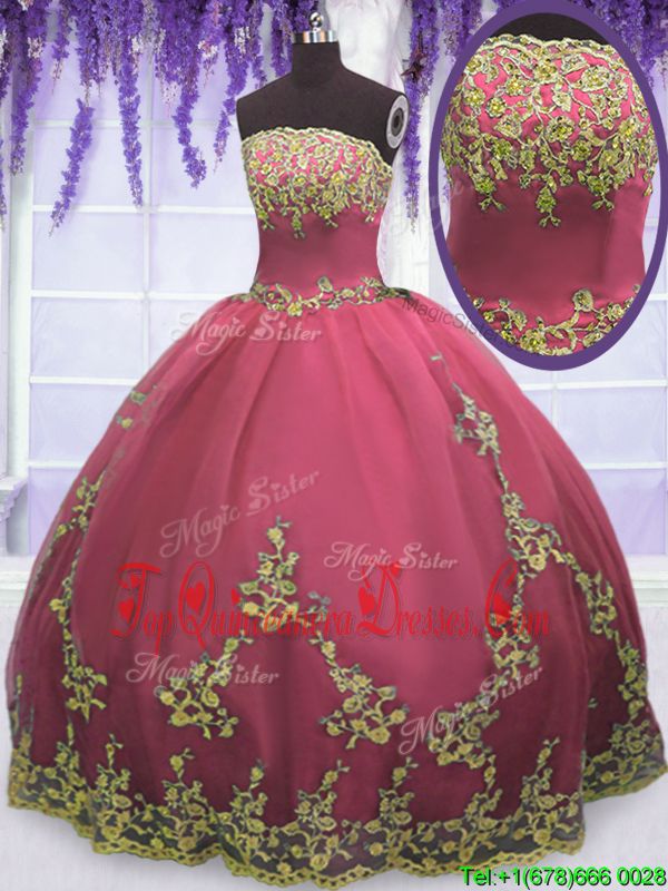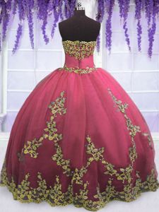 Red Sleeveless Floor Length Appliques Zipper Quince Ball Gowns
