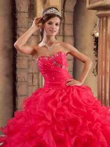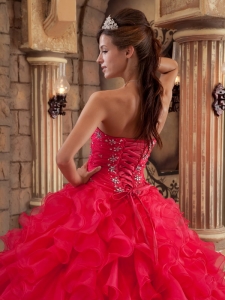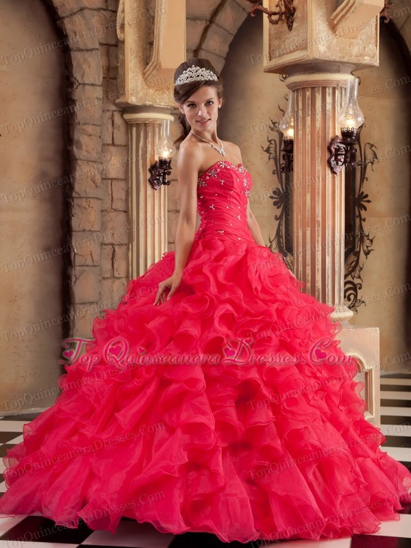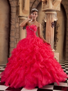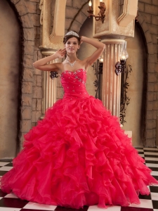 beautiful quinceanera dress with appliques, Red Sweet 16 Dress Organza Ruffles Ball Gown Sweetheart
