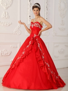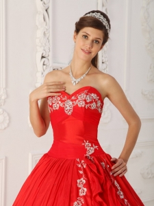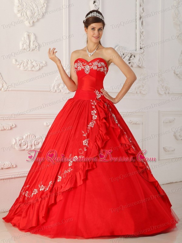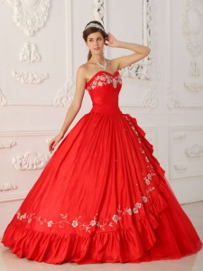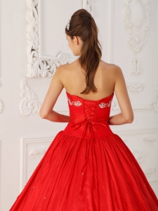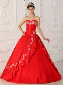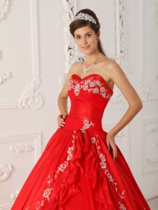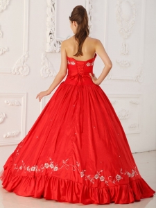 Red Sweet 16 Dress Sweetheart Embroidery Beading A-Line