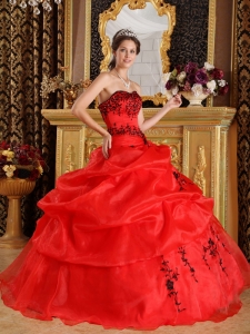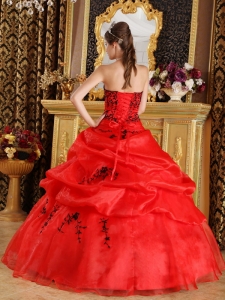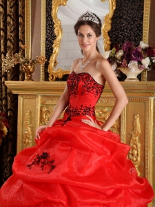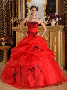 Red Sweetheart Organza Pick-ups Embroidery Sweet 16 Dress