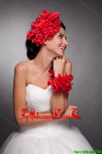 Red Taffeta Hand Made Flowers Headpieces and Wrist Corsage